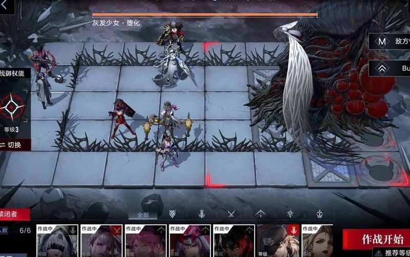 受枷者战斗中,优先集中火力快速清理前排敌人,完成第一轮输出。当第二轮单体精英出现且三人进入同一横排时,立即使用范围伤害技能破核并衔接爆发技能秒杀。破核后迅速开启全员必杀技,注意控制赋能点数避免溢出。若首轮破核无法击杀,保留能量待核心恢复后再次破核强杀。