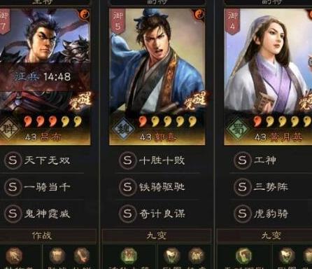 三势吕常规搭配中,若无横戈跃马,多选奇谋或挫锐。建议将三势阵或虎豹骑之一给予郭嘉携带,以增强对当锋的防御能力,提升整体稳定性与应变效果。
