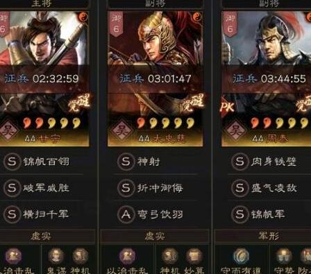 锦帆虎臣弓阵容搭配弯弓饮羽,若将太史慈的战法替换为当锋摧决,可有效克制主流减伤体系,显著提升甘宁前期输出爆发能力,增强整体战斗表现。