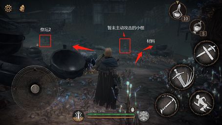 从后方下行可抵达祭坛2,玩家需重新返回桥头内斗区域。