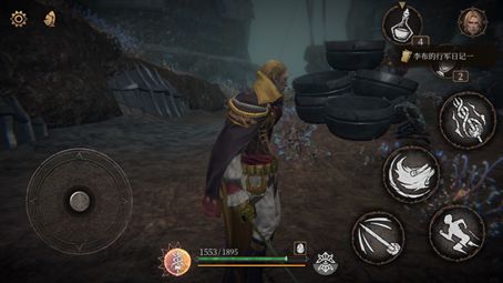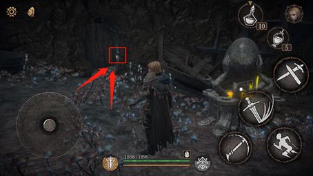 暂时不要进入旁边的主线路山洞(有两个火盆的地方),先往后方区域探索,在锅中获取道具。
