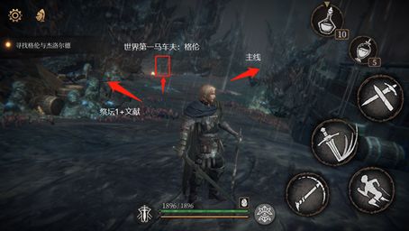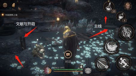 探索完毕,稍作休息后前往双火盆处的山洞,继续推进主线剧情。
