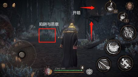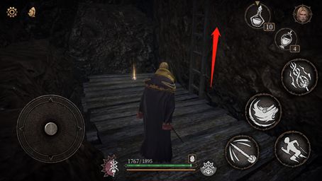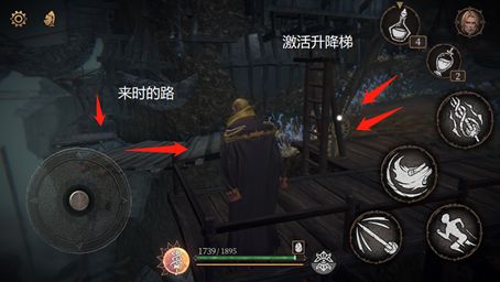 拾取后从宝箱左下方返回梯子,继续推进主线任务。