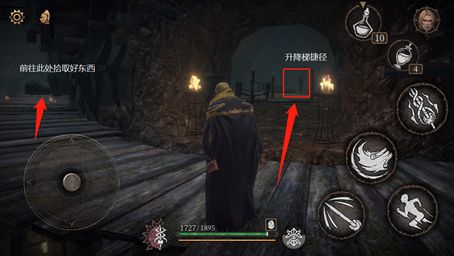 回到之前有两火盆的岔路口,乘坐升降梯,再往后探索并拾取物品。
