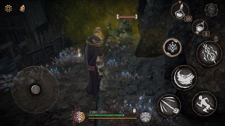 洞穴中有绿紫两螺壳怪,应先攻击绿色,及时打断其藤蔓缠绕技能。