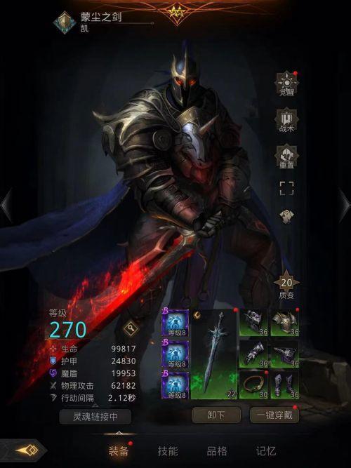 古代战场装备:豆剑、小丑帽、智者长袍、符文刃甲,技能可举盾隐身释放,盾击可连续释放。