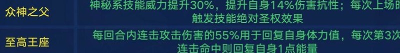 大招为单体攻击,消耗4点能量,释放后除速度外所有属性提升1级,3回合内减伤,并增强一、三技能10%伤害,持续5回合,效果最多叠加7层,叠时刷新持续时间。若在二技能状态下使用,属性提升至2级,且伤害增益叠加2层。