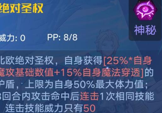 二技能可生成护盾,若三回合内攻击命中,将追加一次威力为50的同技能连击。