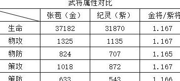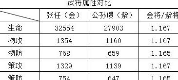 通过数据对比分析金将与紫将的实力差异,帮助玩家更清楚地了解武将品质的优劣。
