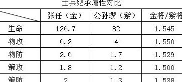 士兵继承的战斗属性中,金将比紫将高出33.3%,但游戏前期和中期该部分占总属性比例较小,经计算可得出初步判断。