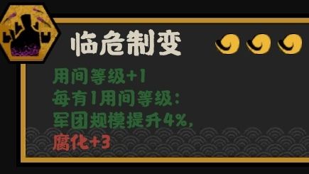 可以确定的是,在大汉及更早的时代,以及三国时期非霸主势力中,临危制变这一策略除非搭配名臣使用,否则效果十分有限。主要原因是这些时期的特资大多优先用于科技提升,而春秋战国至秦楚汉时期的用间政策往往也对科技有较高要求。大汉时期除了外事外,仅有少数政策能提升用间效果,且发动外事本身条件复杂,因此更倾向于选择直接增强战力的政策。三国时期的非霸主势力同样缺乏有效的用间支持,整体上使得这一策略难以发挥实际作用。