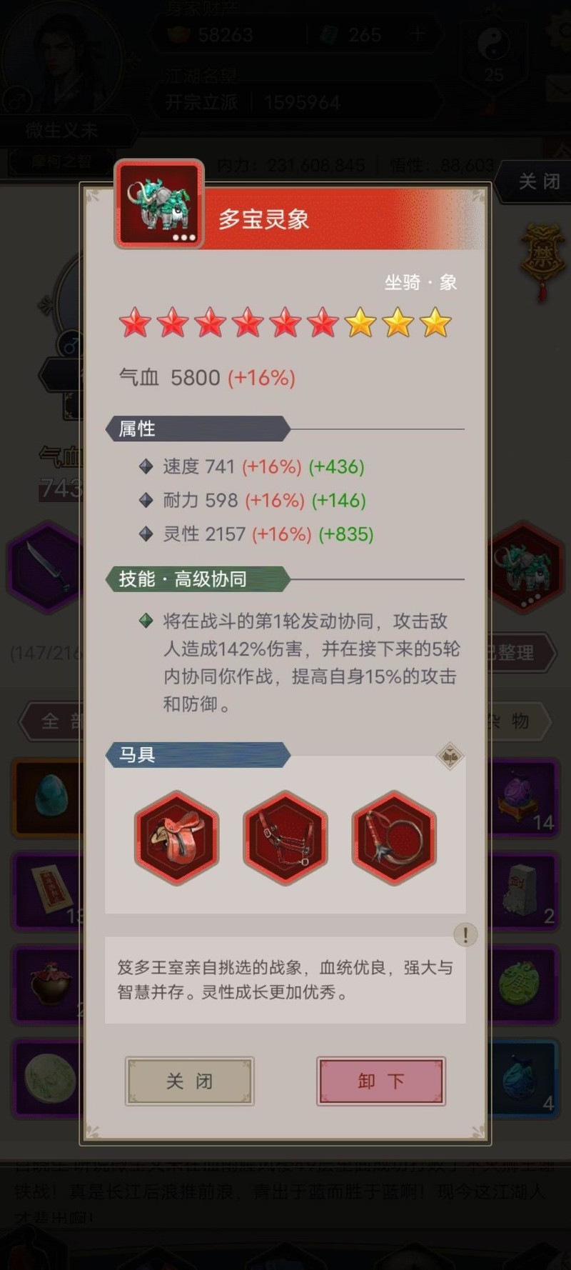 通过天池活动换取杨家邀请信,成功提升大象一星等级,其技能掌握度已达69%。