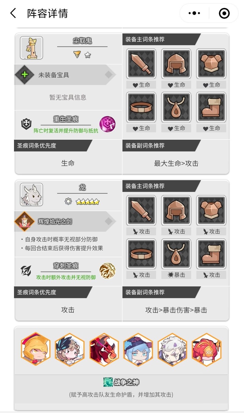 装备选择:蔷薇搭配速度与命中,暗猫全攻击装,辅助以生命加成提升神格输出,木乃伊需最慢。