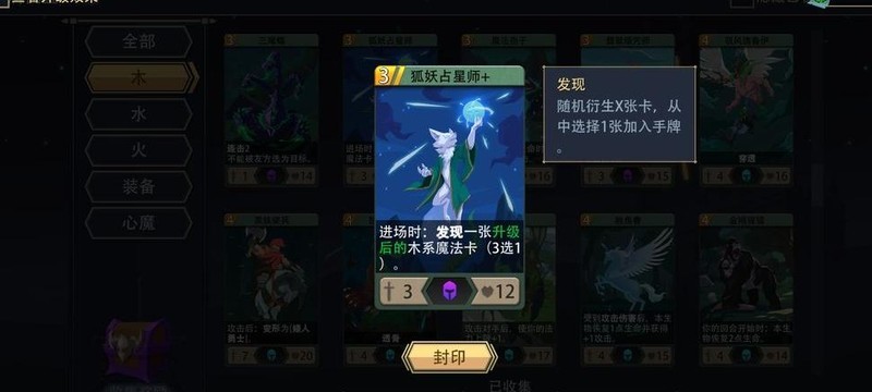 狐妖占星师:入场时赠送一张木属性法术卡。