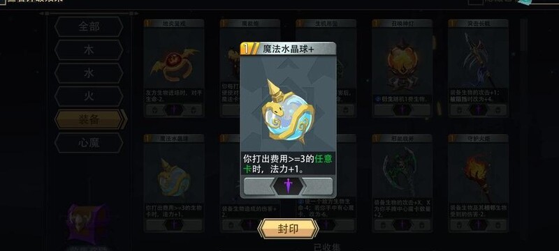 魔法水晶球:每打出一个三费以上生物,获得一点法力。