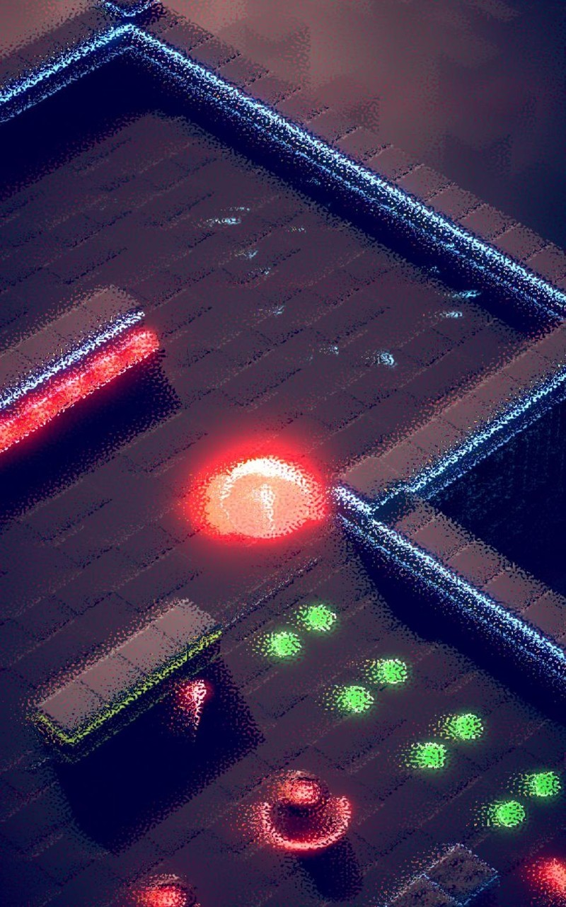 左上角的三角结构可参考三维弹球中的相似部件。右侧带有两个侧翼的装置是改进版激光炮台,具备两种模式:一种能追踪小球实时位置,生成瞄准轨迹并延时发射激光;另一种则为固定方向发射的定向激光。