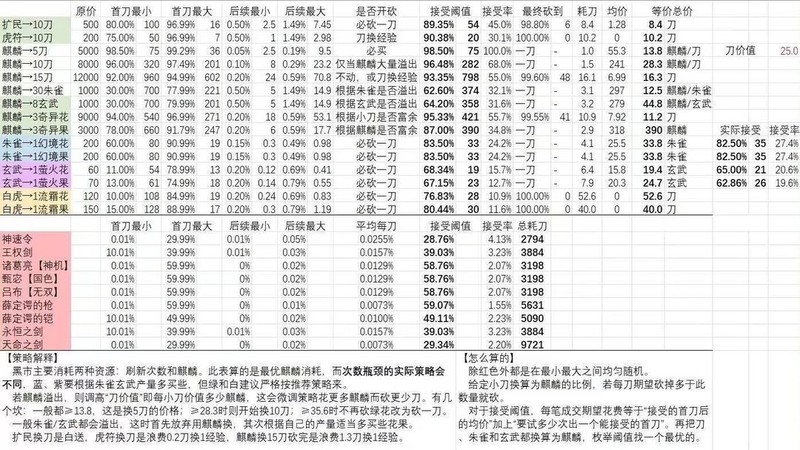 10.8麒麟换10把刀,麒麟多或攒刀可砍一刀购买,全力冲薛枪可从30级开始,甚至减少绿果购买来全买。