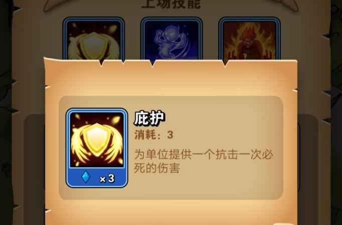 庇护技能只需消耗3点能量,便可为单个目标抵挡一次致命伤害,适合保护场上关键英雄。若你有特别需要守护的角色,建议优先使用。但后期关卡若缺少复活帐篷,其保护作用将受限,因此务必谨慎使用,珍惜每一次防护机会。