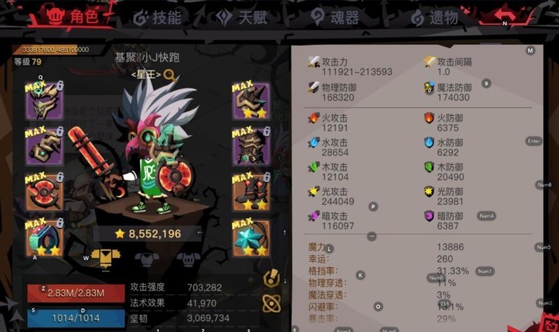 属性约为:3.22血量,2.8光,1万暗。
