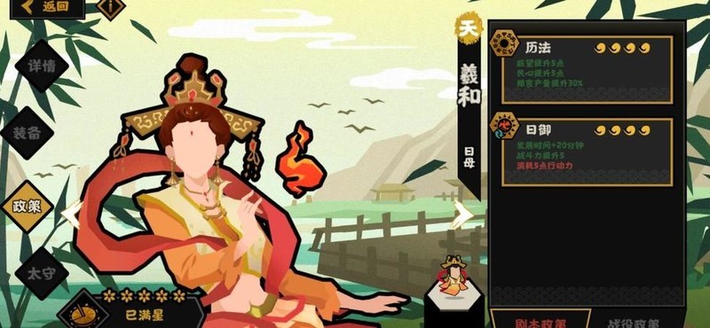 羲和可提升20%钱粮、人口与军队增长速度,萧何则仅提升30%钱粮产量。