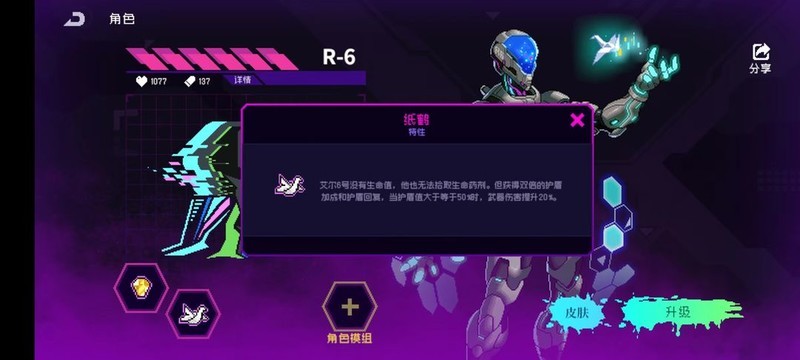R6被动技能提供双倍护盾回复效果,开局自带双倍护盾上限,适合在战斗中提升生存能力。
