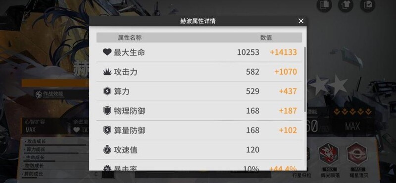 亲密度满级为15级,三项加成均可升至5级,不同人形属性略有差异,但数值通常相同,可直接提升攻击算力55点、暴击率8%,这些增益计入黄字部分。