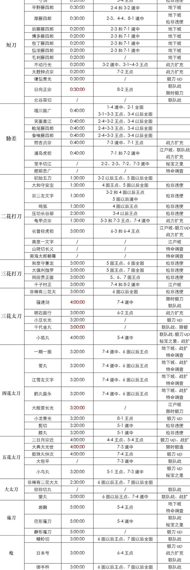 优先培养太刀,其次是短胁打,打刀排在因日战可用太刀,夜战适合短胁,打刀表现平平,但依然有人出于热爱坚持使用,从薙刀到枪再到剑,皆是情怀支撑。