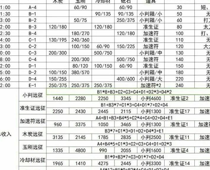 附上远征图,按现有材料缺口进行安排。