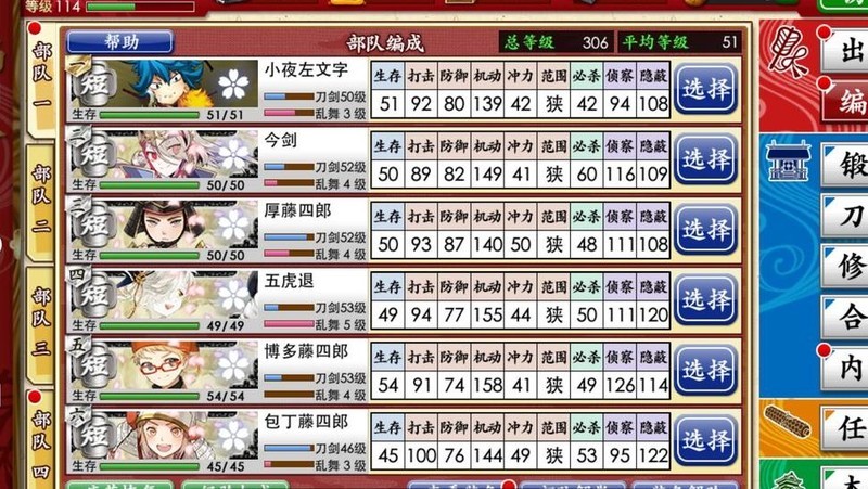 一队短刀先远征练级,待六图开放后再重点培养。