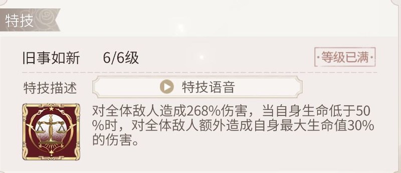 特技残血根据最大生命值提升伤害,配合80+1绘卷与满级画技,约增加6780点伤害,基础伤害21582,总输出勉强达到T0水准,非残血状态下则伤害大幅下降。