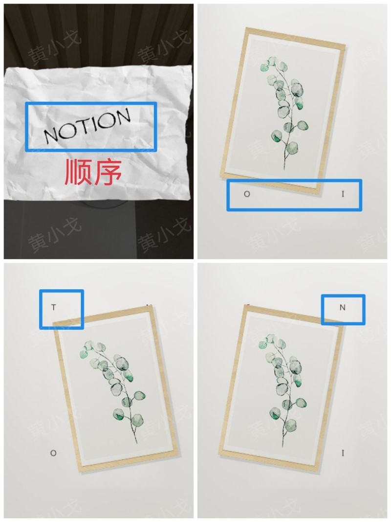 纸团上的字母写着NOTION,暗示着某种顺序。