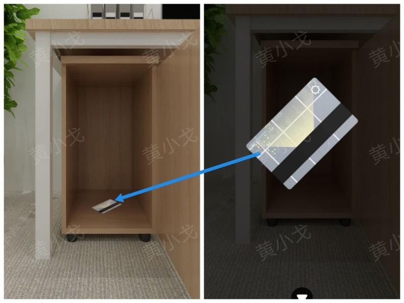 打开柜子,拿到卡片。