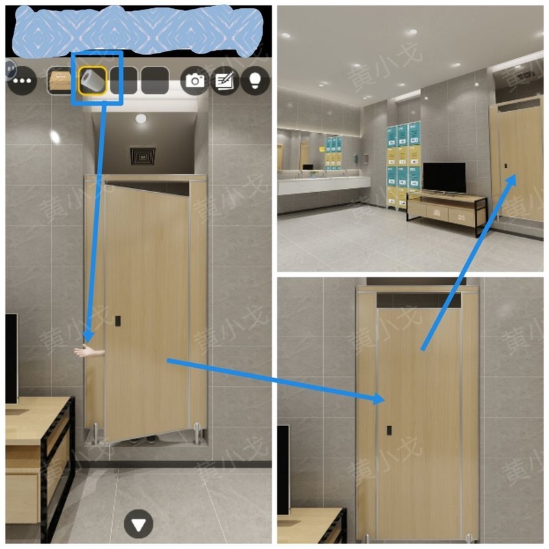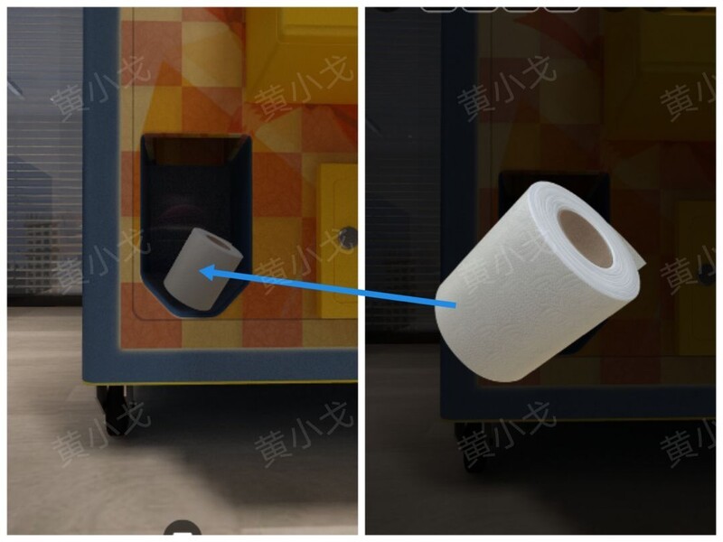 点击隔间,敲门后将厕纸递给里面职员
