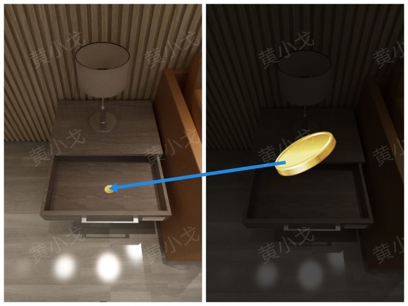 拉开抽屉,找到一枚硬币。
