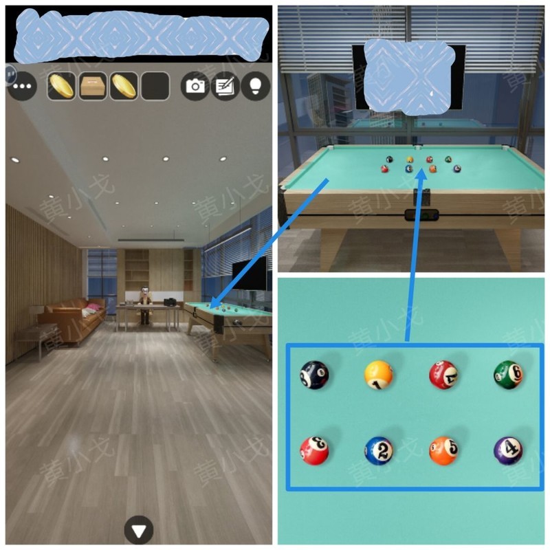 点击查看台球桌上摆放的球
