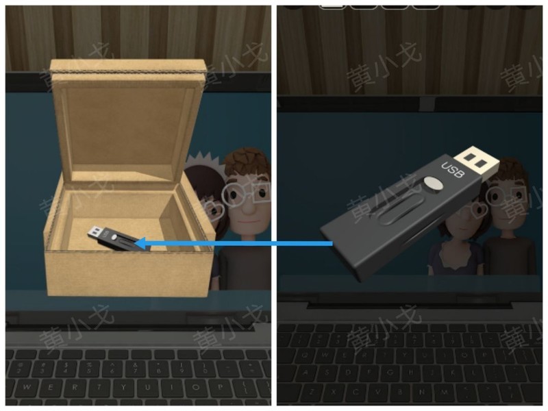 打开盒子,取出U盘。