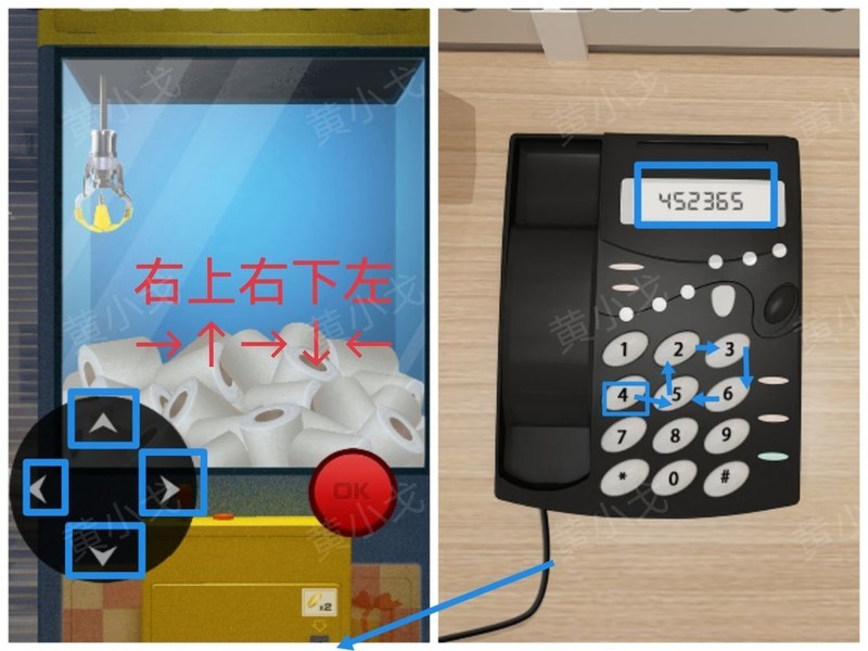 依据员工拨打电话时键盘上的按键顺序,操控夹娃娃机进行移动。