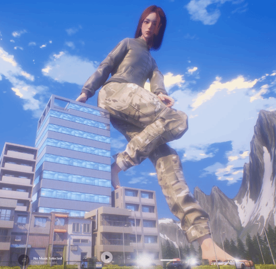 本作以显著的体型差异为设计核心,构建出层次分明的双重视角体验。玩家可选择化身身高逾百米的女巨人,在高度还原的现代都市环境中自由行动——漫步街道、踏平楼宇、瓦解军事部署,在压倒性的力量尺度中释放情绪、获得沉浸式解压体验;亦可切换为普通市民身份,以第一人称视角穿行于巨人步履所至的残垣断壁之间,在震颤的地面与遮天蔽日的阴影下竭力求生,直面极限压迫下的速度、判断与生存本能。