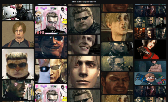 访问该网址后,页面呈现为一个风格夸张、充满戏谑意味的图集网站,其中汇集了大量以生化危机系列经典角色为原型的二次创作图像,包括威斯克、艾达·王、里昂等人物,形象荒诞、手法诙谐。