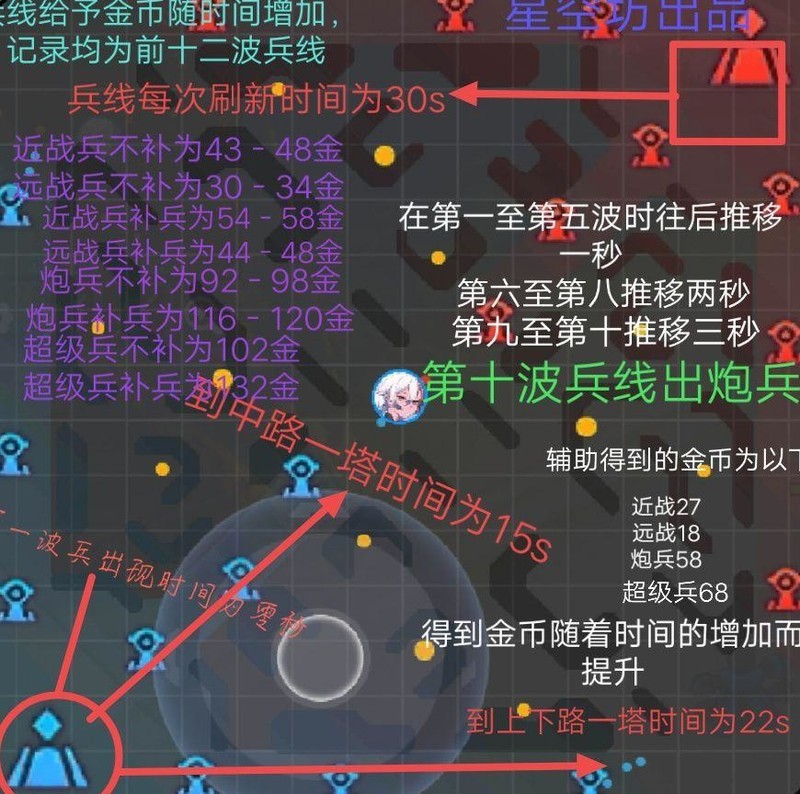 此时需依据兵线刷新时间判断,经研究发现,兵线刷新规律如下: